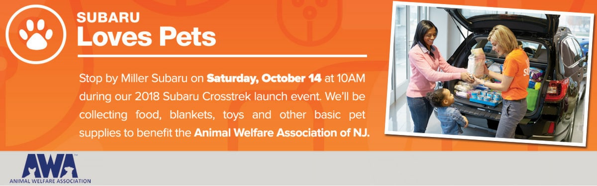 At Miller Subaru, we're committed to keeping all animals safe and healthy. This month, through the Subaru Loves Pets initiative, we're proud to accept donations on behalf of the Animal Welfare Association!