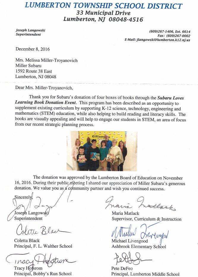 Miller Subaru in partnership with Miller Truck Leasing and Miller Ford Lincoln had a successful Back to School Drive. Employees and customer donated needed items for elementary schools in Camden, NJ. This was our first year undertaking such a task and it was a huge success thanks to everyone's participation!