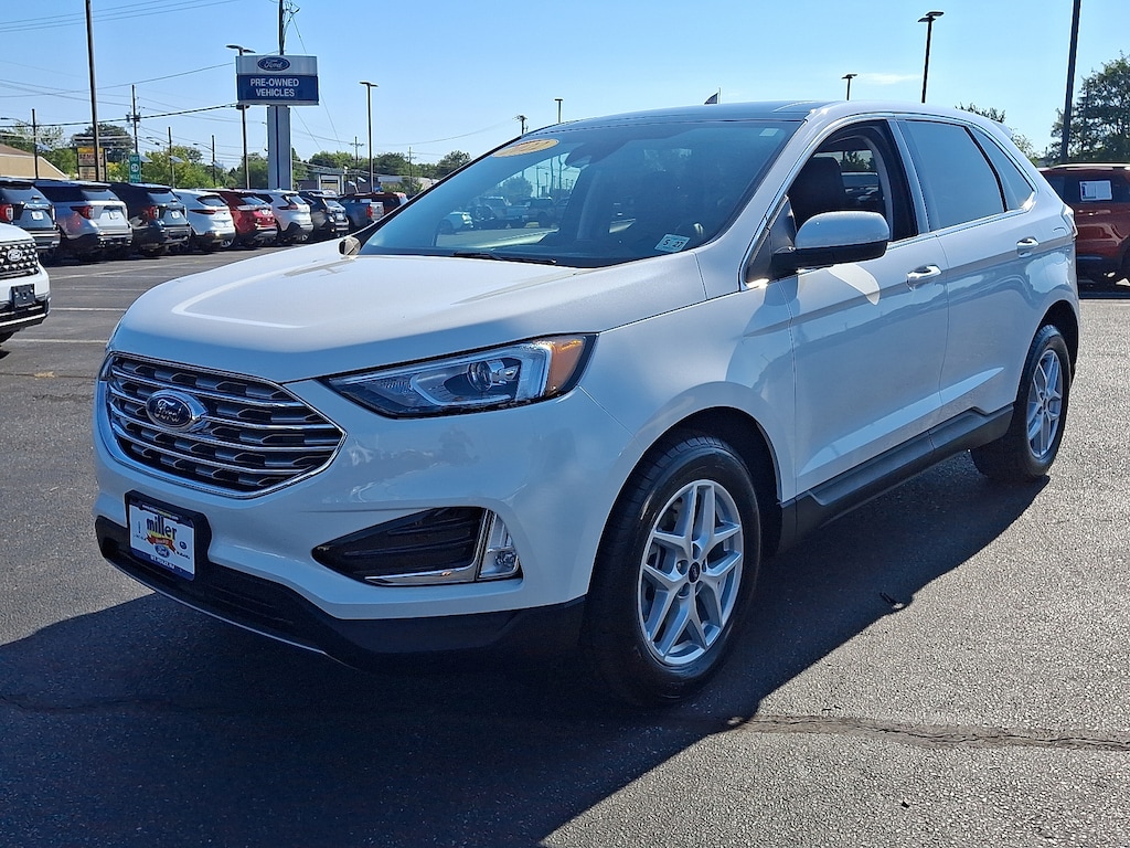 21/28 City/Highway MPG 2022 Ford Edge SEL Star White Metallic Tri-Coat *Ford Certified* *One Owner* *Clean Vehicle History Report* *Bluetooth Hands-Free* *Leather Seats* *LOW MILES* *Non Smoker* *Local Trade Not a Prior Rental Vehicle* AWD 110V/150W AC Power Outlet Adaptive Cruise Control w/Stop & Go Connected Built-In Navigation Convenience Package Equipment Group 201A Evasive Steering Assist Fog Lamps w/Chrome Bezel Ford Co-Pilot360 Assist+ Lane Centering Panoramic Vista Roof Perimeter Alarm Power Liftgate Remote Start System SecuriCode Keyless Entry Keypad Universal Garage Door Opener (UGDO) Wireless Charging Pad.Certification Program Details: Ford Blue Advantage: Blue Certified* 139 Point Inspection* Transferable Warranty* Vehicle History* Warranty Deductible: $100* Roadside Assistance* Limited Warranty: 3 Month/4000 Mile (whichever comes first) after new car warranty expires or from certified purchase date* and 11000 FordPass Rewards Points to use toward first maintenance visit